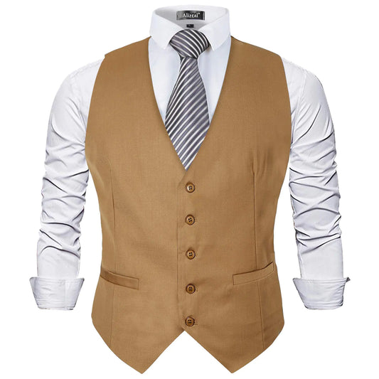 Alizeal Men's Classic Khaki Waistcoat - 5 Button V-Neck