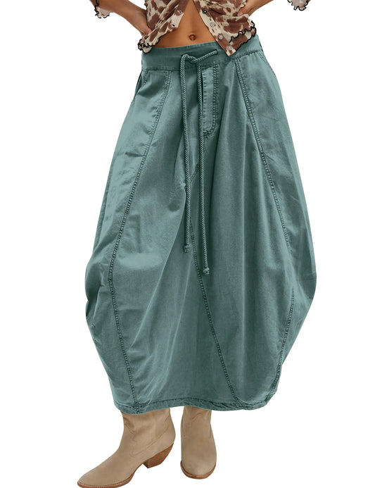 TERIVEEK Poplin Parachute Maxi Skirt with Pockets