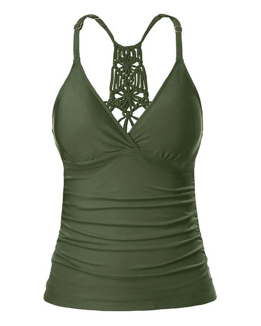 V-Neck Ruched Tankini Swim Top for Women