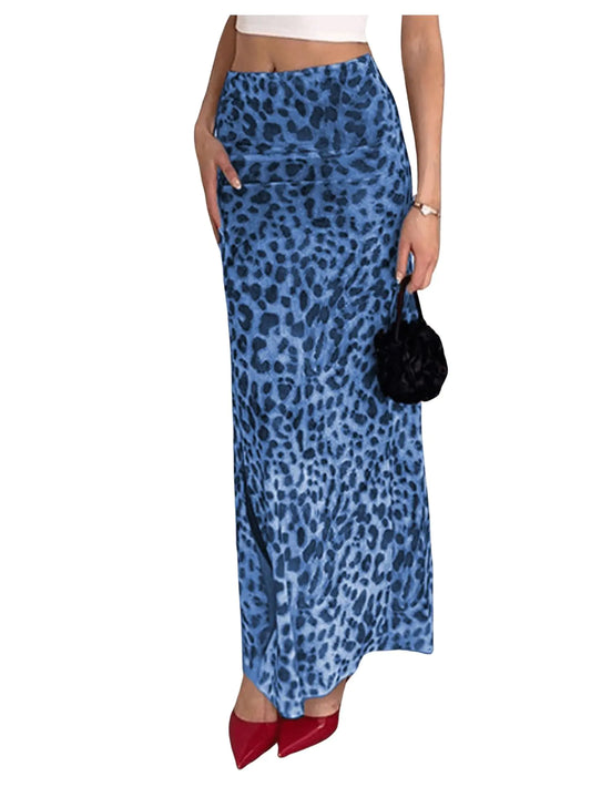 BEAUDRM Y2K Leopard Ruched Maxi Skirt