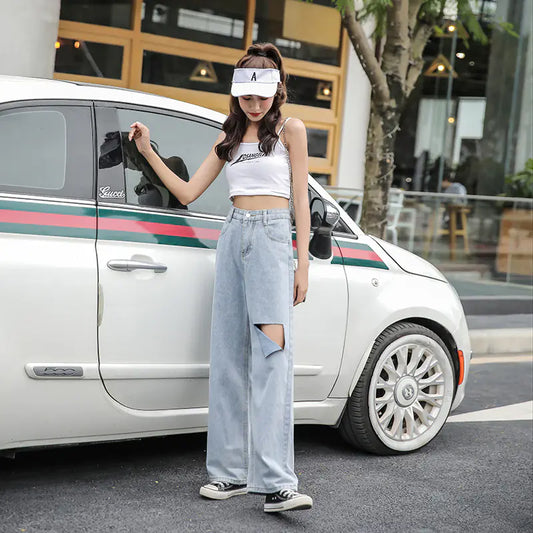 Chic High-Waist Ripped Denim for Women