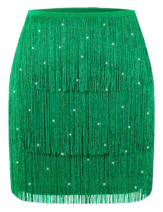 MANER Women's Sparkly Fringe Mini Skirt - Green (Large)