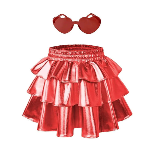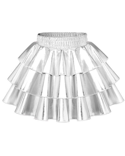Shiny Metallic 3-Tier Girls Skirt - Sparkle Ruffle Skort Silver