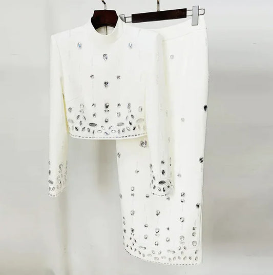 Chic Rhinestone Embellished Skirt Set