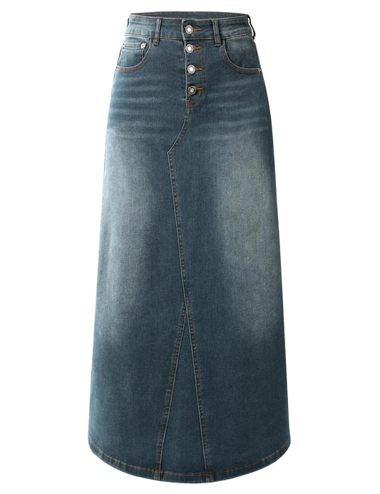 Chic Vintage High-Waisted Denim Maxi Skirt