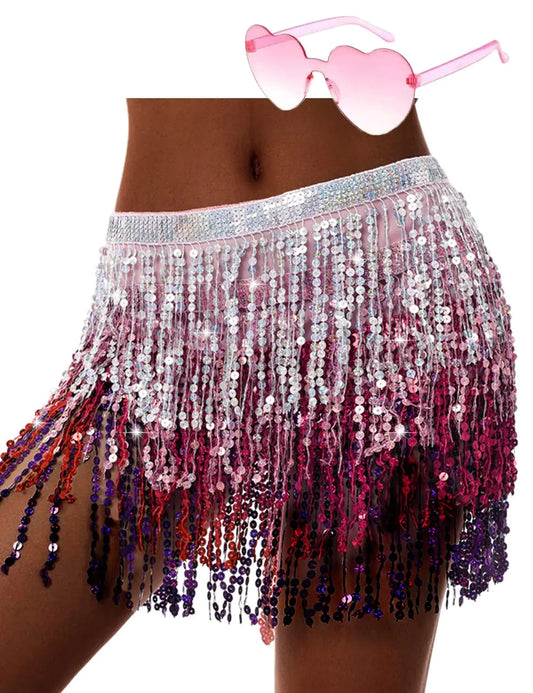 Pink Gradient Sequin Dance Skirt & Heart Sunglasses Set