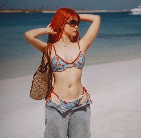 Aqua Eve Red Underwire Push-Up Bikini Top