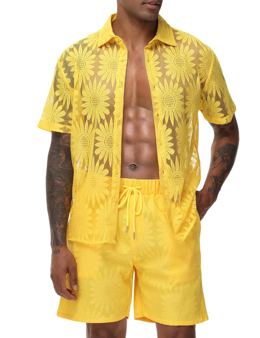 MeshLace Men's Summer Tracksuit Set(OrangeXL)