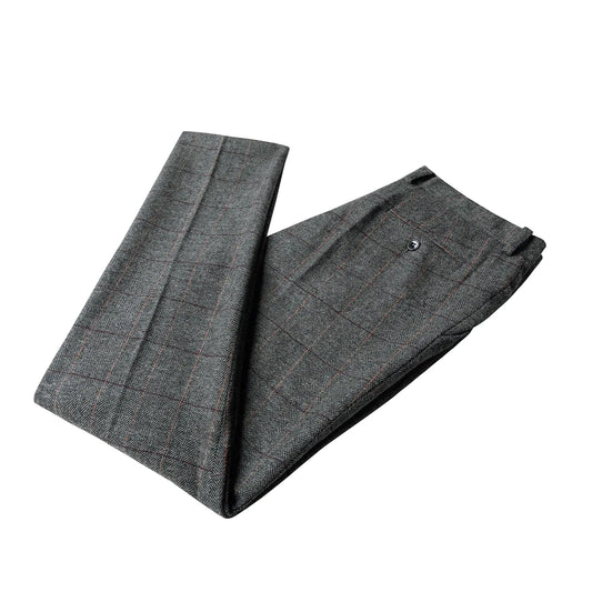 Men's Tweed Plaid Business Suit Pants - Classic Fit Grey