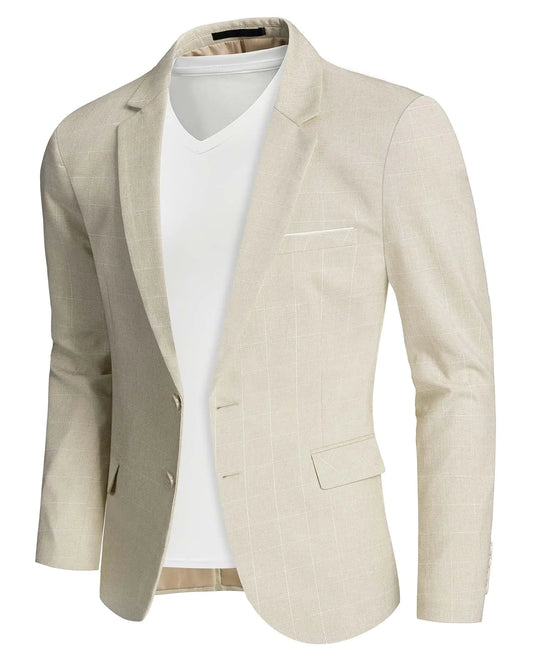 MrSure Men's Lightweight Linen Blazer - Beige White Plaid