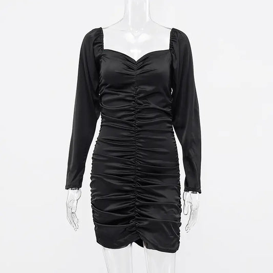 Elegant Long Sleeve Pleated Dress