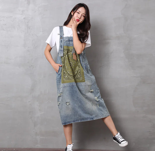 Retro Chic Patchwork Denim Dress