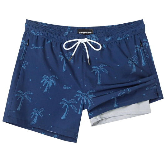 SURF CUZ Quick-Dry Men's Dual Swim Trunks with Compression & Zipper Pockets
