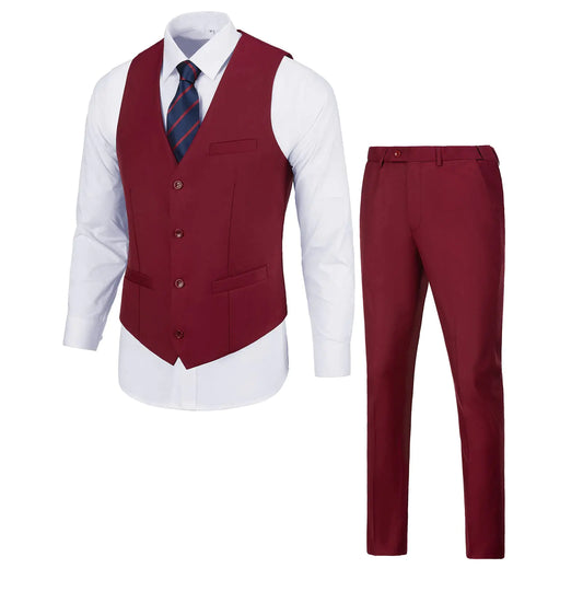 Barry.Wang Men's Red V-Neck Suit Vest & Bowtie Set