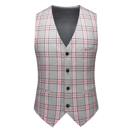 MOGU Men's Checkered Slim Fit Suit Set - Plaid Blazer, Vest & Pants
