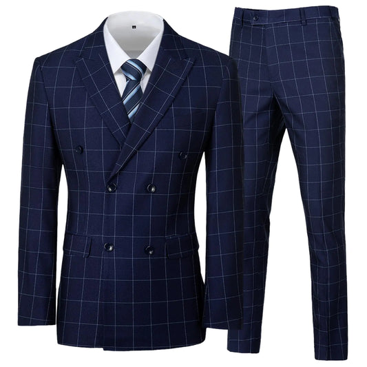 Men's Slim Fit Blue Plaid Tuxedo Set