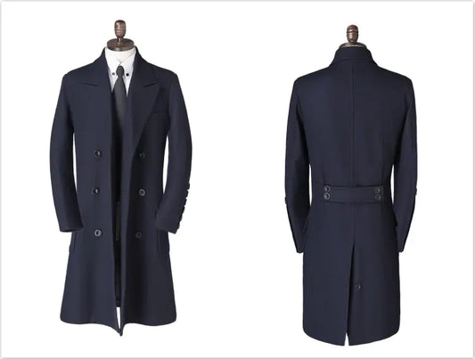 Men's Wool Blend Double Breasted Long Coat (British Style)