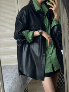 Sheepskin Leather Fox-Collar Coat