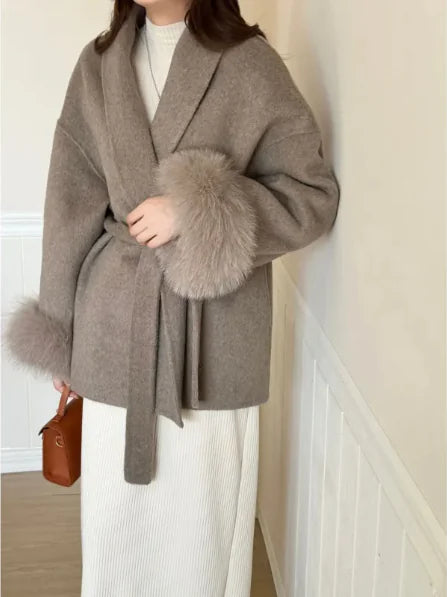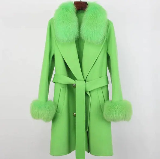 Alpaca Wool Elegance Coat with Removable Fox Collar