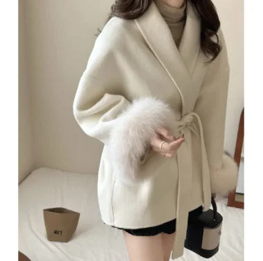 Woolen Fur-Collar Coat