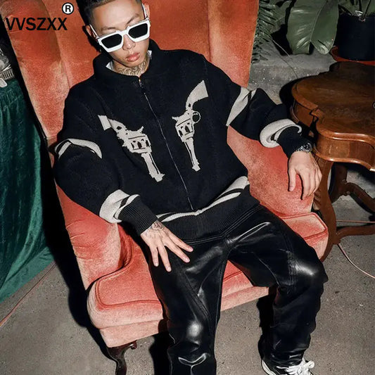 Retro Zip-Up Cardigan Sweater for Men