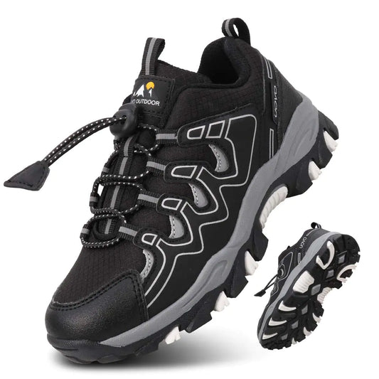 Eggseed Boys Shoes Boys Sneakers Light Weight Outdoor Shoes Non-Slip Boys Water Resistant Hiking Shoes Rubber Children Casual Shoes Breathable FitnessBig Kids Shoes Size 7 Black Silver