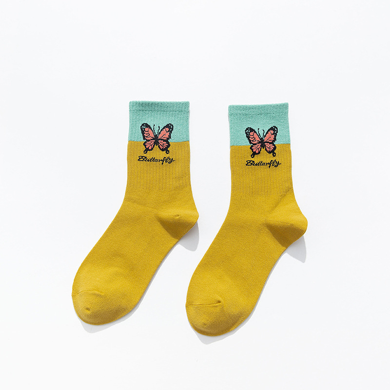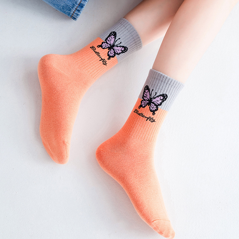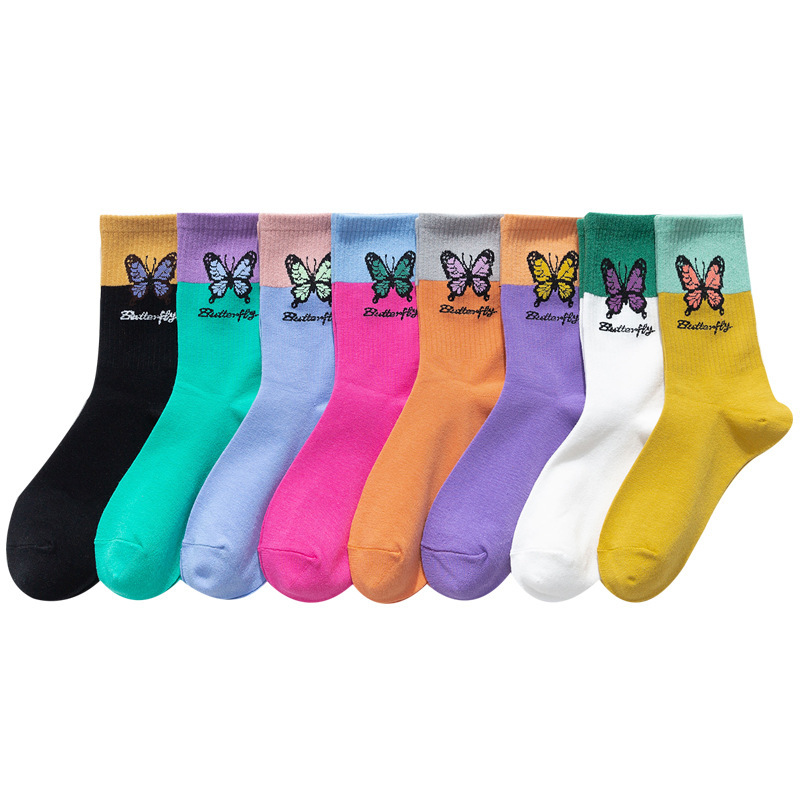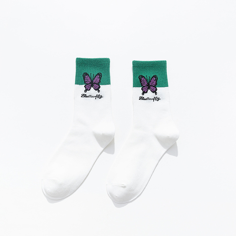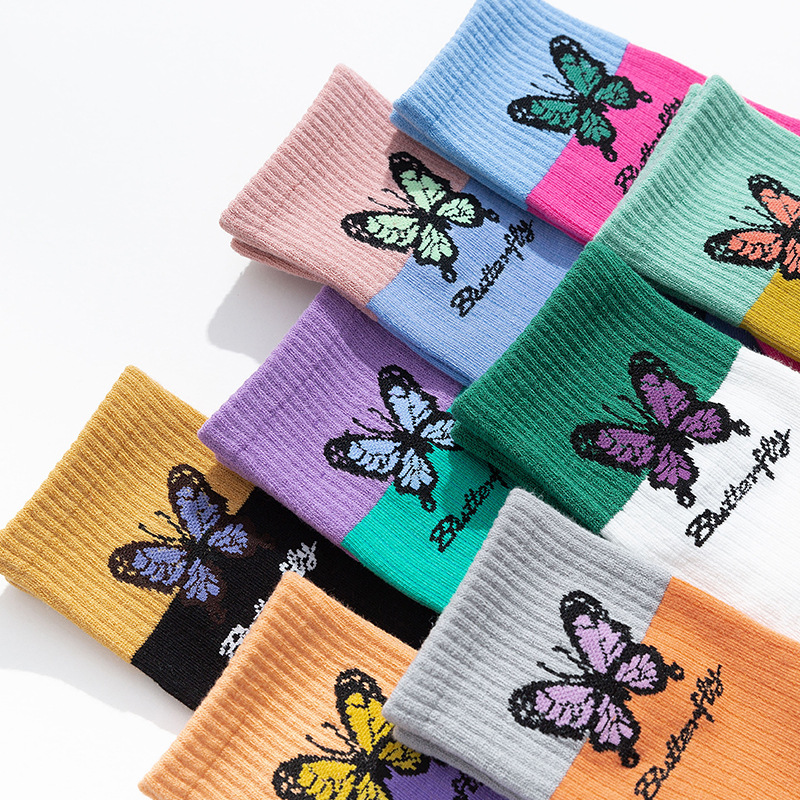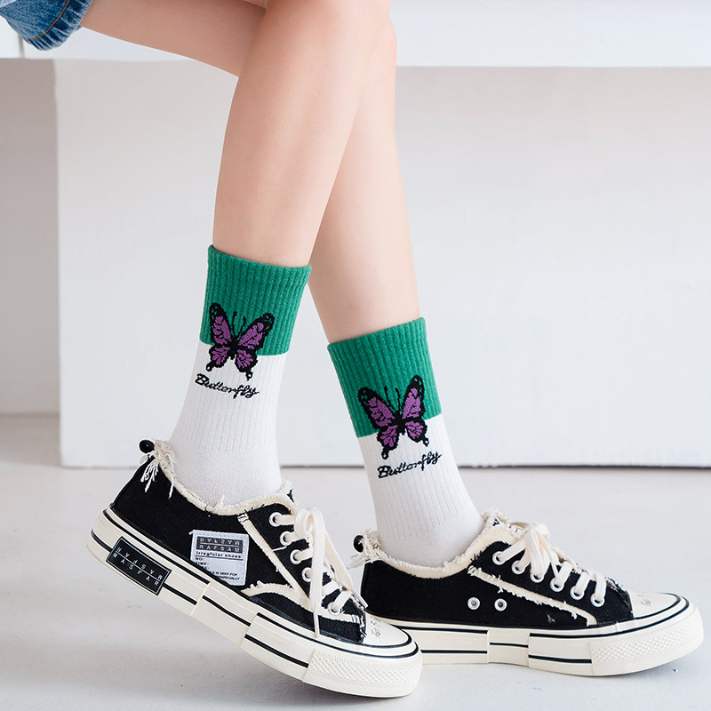 Featuring an eye-catching color matching butterfly pattern, these socks are a playful addition to any outfit. Whether you're dressing up for school or just relaxing at home, the all-match style ensures you look fashionable without compromising on comfort.