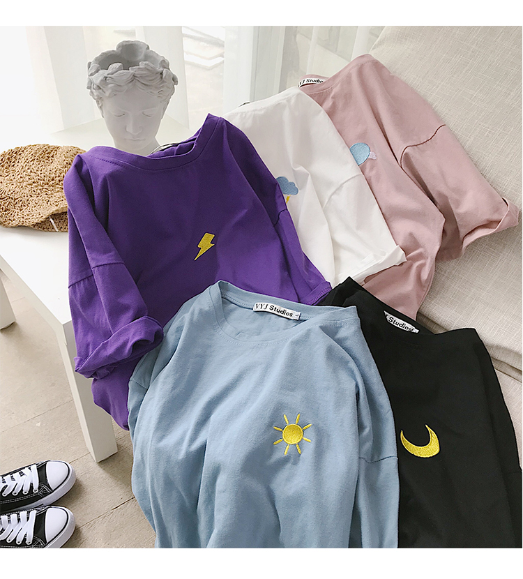 Crafted from a chemical fiber blend, predominantly made of 99% polyester fiber, this shirt promises durability and breathability, making it ideal for those warm summer days. The loose fit and round neckline provide a casual yet fashionable look, allowing for easy movement and all-day comfort. The five-point sleeve adds a modern twist, ensuring you look chic without compromising on ease of wear.