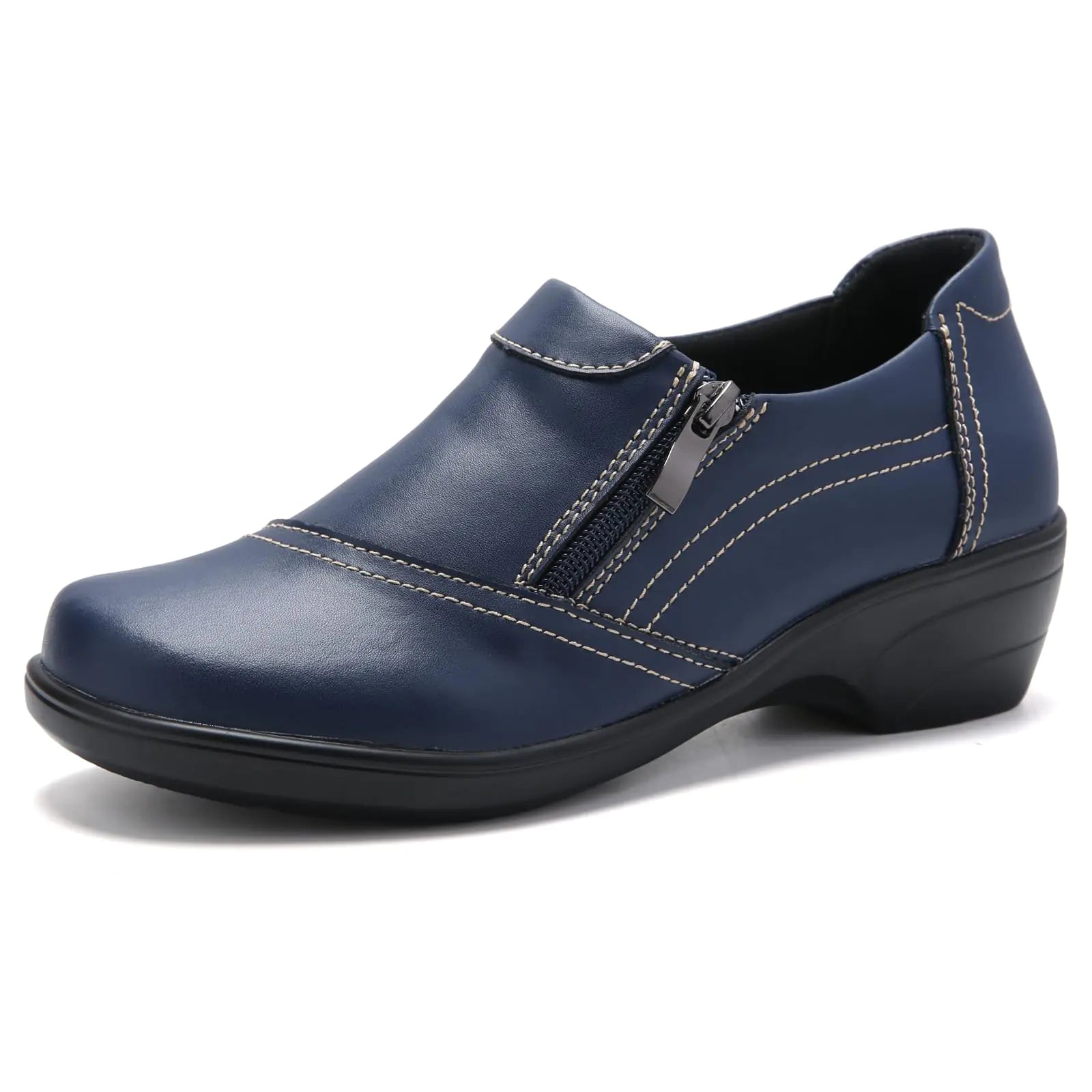 HJJ Casual Zip Loafers for Women - Comfortable Navy Office Shoes US 10