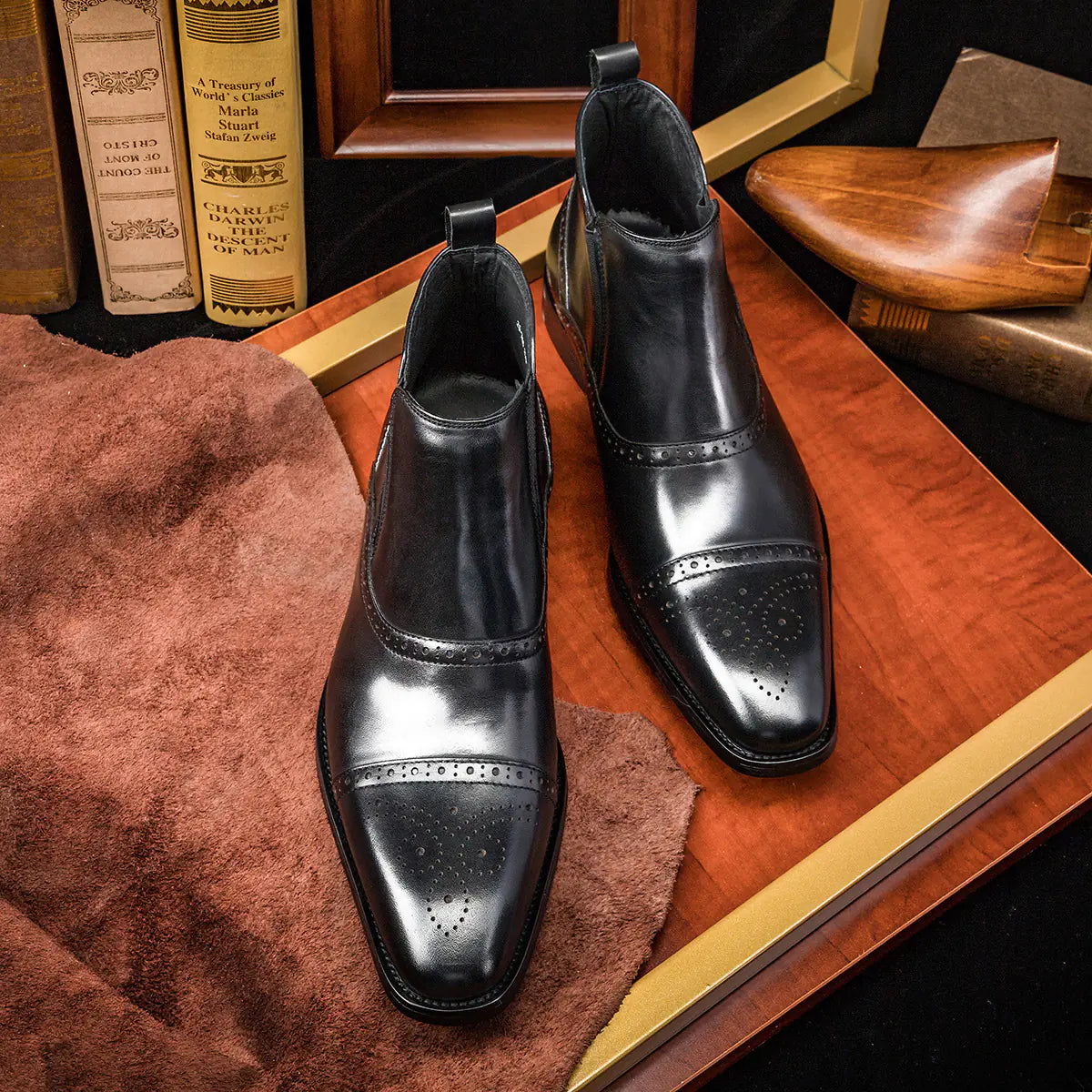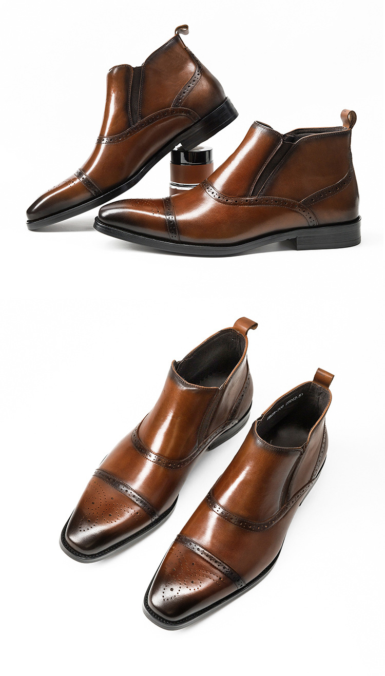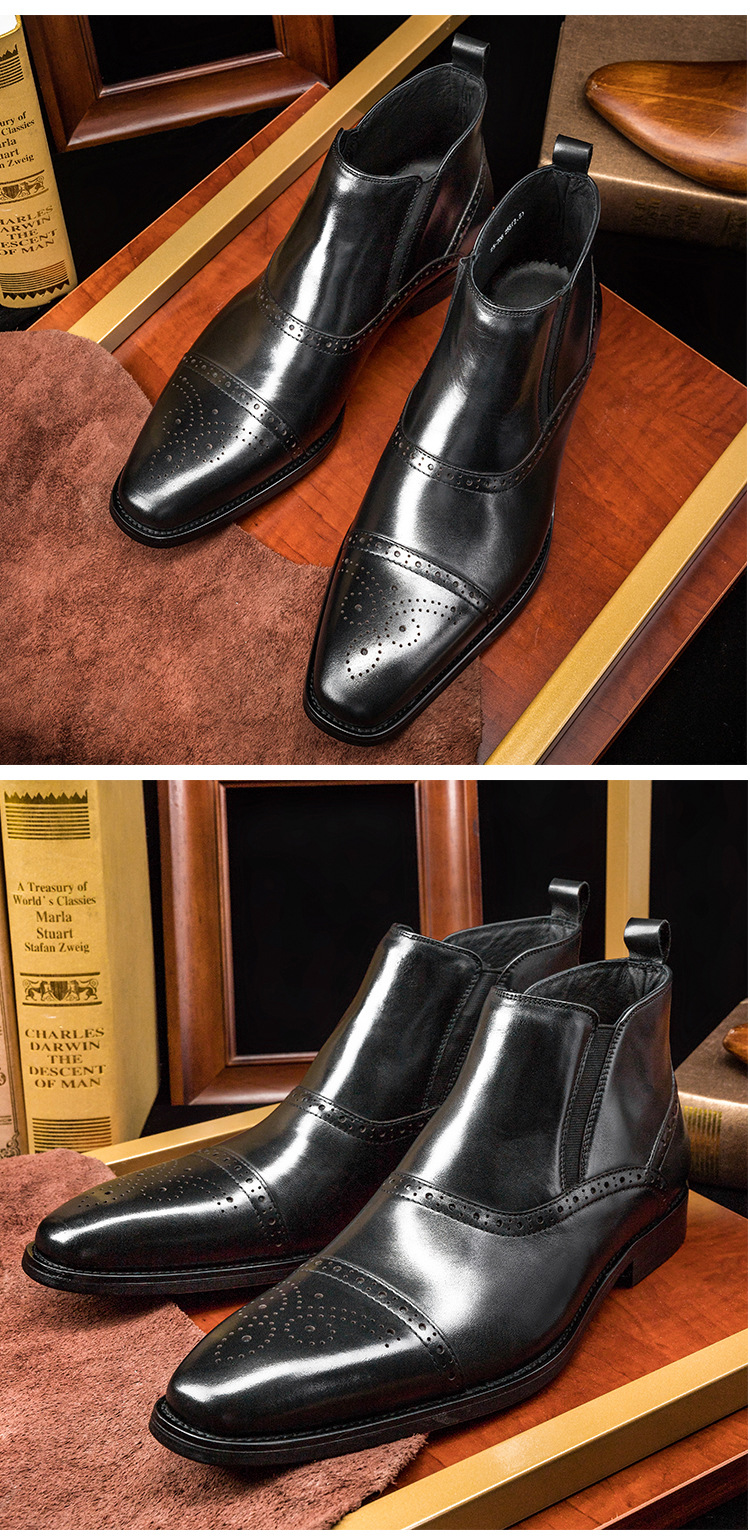 Featuring a flat square heel and a low tube design, these Chelsea boots offer a sleek silhouette that complements any outfit, whether you're dressing up for a formal occasion or going casual for a day out. The natural leather insole ensures maximum comfort, while the rubber sole provides excellent grip on various surfaces, making these boots a reliable choice for any adventure.