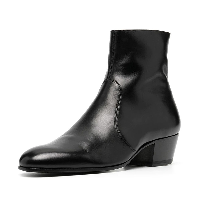 Step up your style game with our Men's Fashion Top Layer Cowhide Zipper Martin Boots. Crafted from premium top layer cowhide, these boots not only exude elegance but also promise durability and comfort. The pointed toe shape adds a touch of sharp sophistication, making them perfect for both casual outings and formal events.