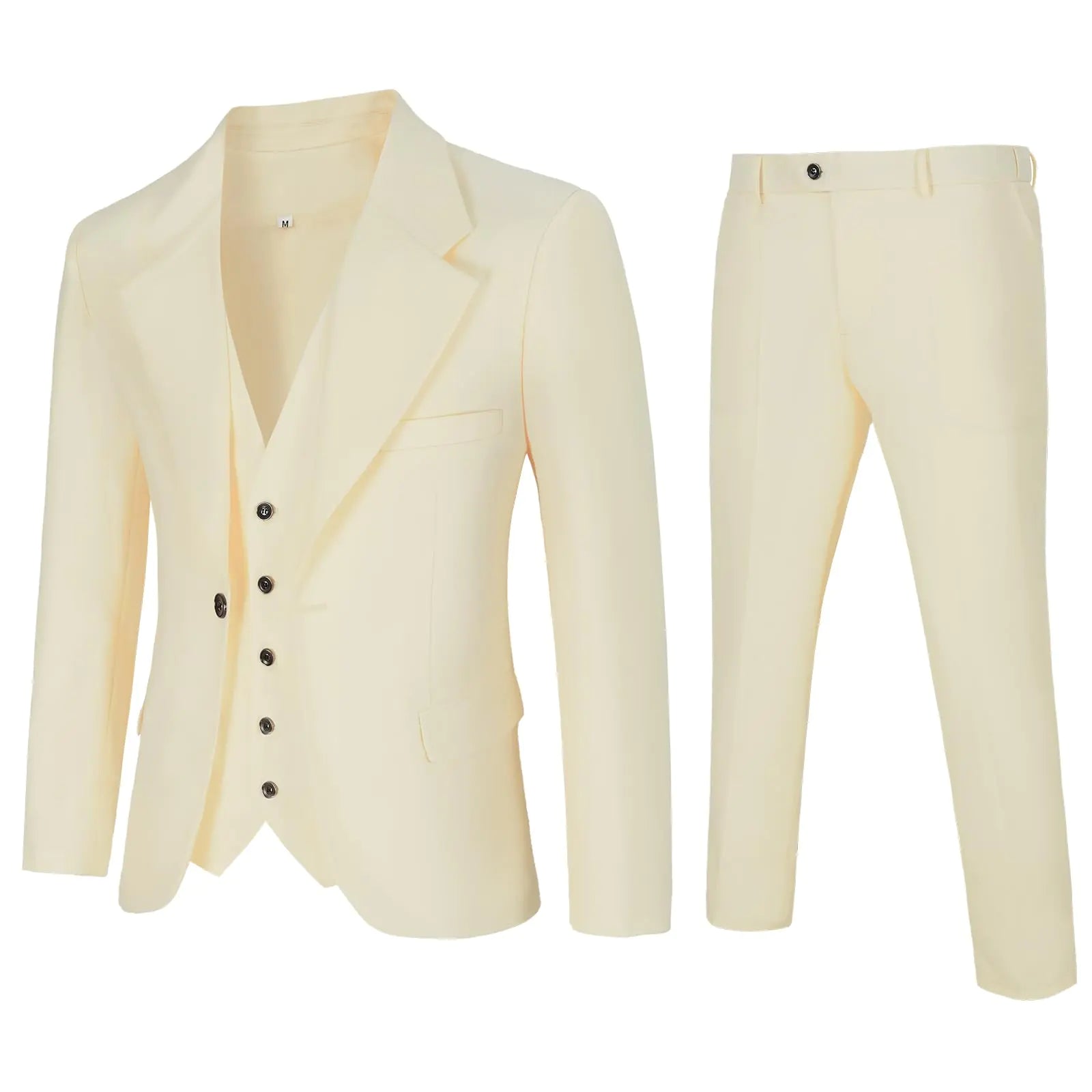 [PolyesterRayon Suit jacketpants and vest are included. DESIGN:This tuxedo suit with full shoulder design and slim cut with 3D draping. Slim fit suits little tighter than a regular fit suit. When you put on it make you slimmer and sharp. And looks modern and handsome. "OCCASIONS:Its suitable for multi-occasionslike wedding daily life business meeting any fashion forward parties any grandly holiday and ect. It is also prefect for the young men prepare for the Homingcming and back to school." ATTENTIONS:Dry cleaningLow iron if possible. lease reference to the“ product description” before purchasing choose your favorite colors and style and refer the size chart choose according to your size.]