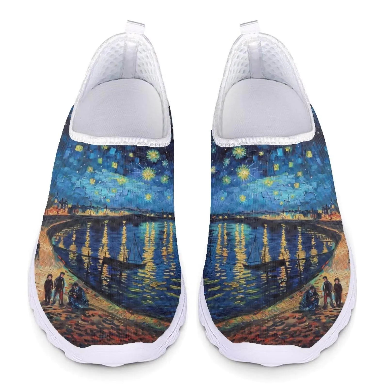 [【Mesh Shoes】:Mesh Upper + EVA Sole The upper is mesh with holes not smoothLightweight non-slip sole. 【Lightweight Sneakers】Breathable material keeps your feet dry and cool. Lightweight casual shoes that feel like flying on your feet. 【Comfortable Walking Shoes】No shoelaces and the high elastic band make it easy to take them on and off. The bionic design fits your feet comfortably while shoe lightweight saves your energy "【Fashionable and Cool Design】These stylish printed womens sneakers with unique personality prints look very creative and full of personality. If youre tired of regular shoes custom sneakers" 【Occasions】These shoes is not only unique in pattern design but also have greater fun in sports. Such as: walking running tennis garden work casual outdoor nursing restaurant shopping travel driving dancing training.]
