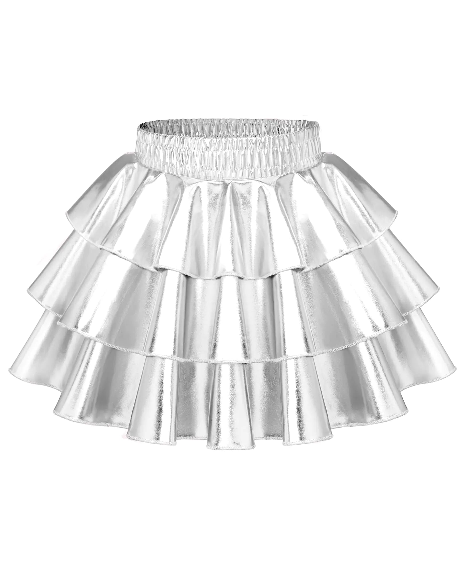 Shiny Metallic 3-Tier Girls Skirt - Sparkle Ruffle Skort Silver